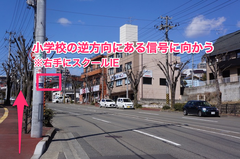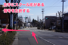 交差点を直進して、右手にIEスクールが見える信号を右折してください。
