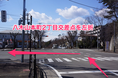 しばらく八木山方向に直進すると、左手に八木山生協、右手に八木山小学校の交差点に出ます。