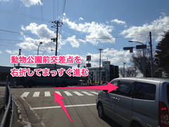 286号線に出る交差点(斜め左方向に石焼ラーメン火山)を八木山方向に直進してください。